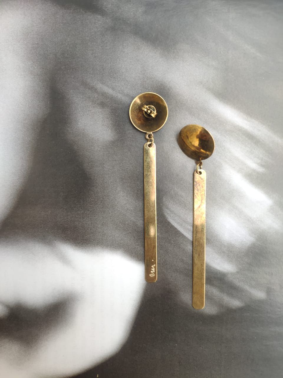 Brinco metal nos banhos prata envelhecido e ouro envelhecido.