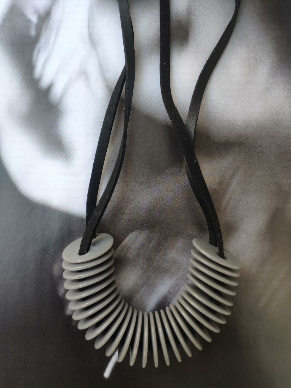 Colar couro duplo com botões em acrílico nas cores preto e cinza.
