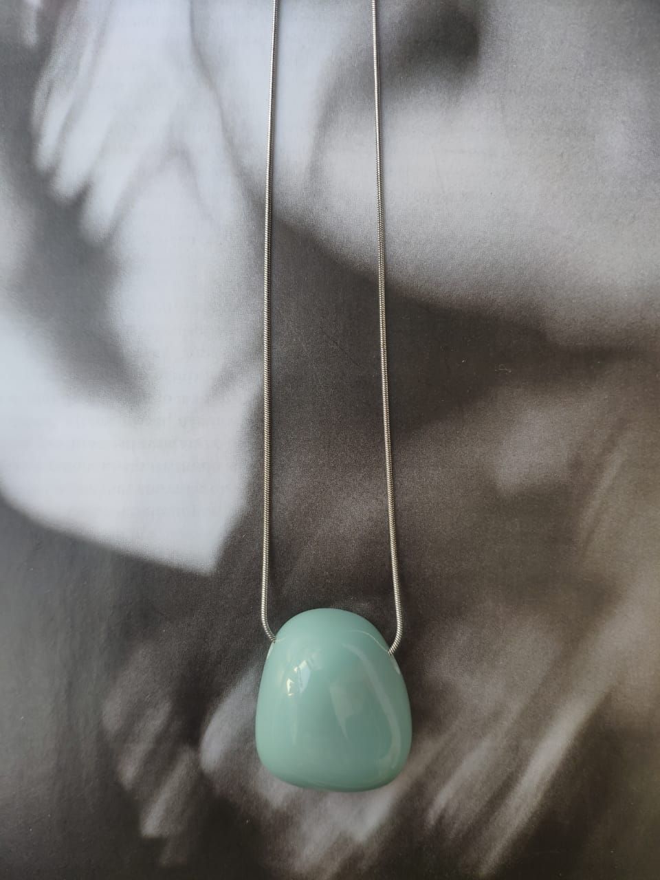 Gargantilha rabo de rato 40 cm mais extensor de 5cm em banho de prata e ouro envelhecido, e peça em resina azul claro.
